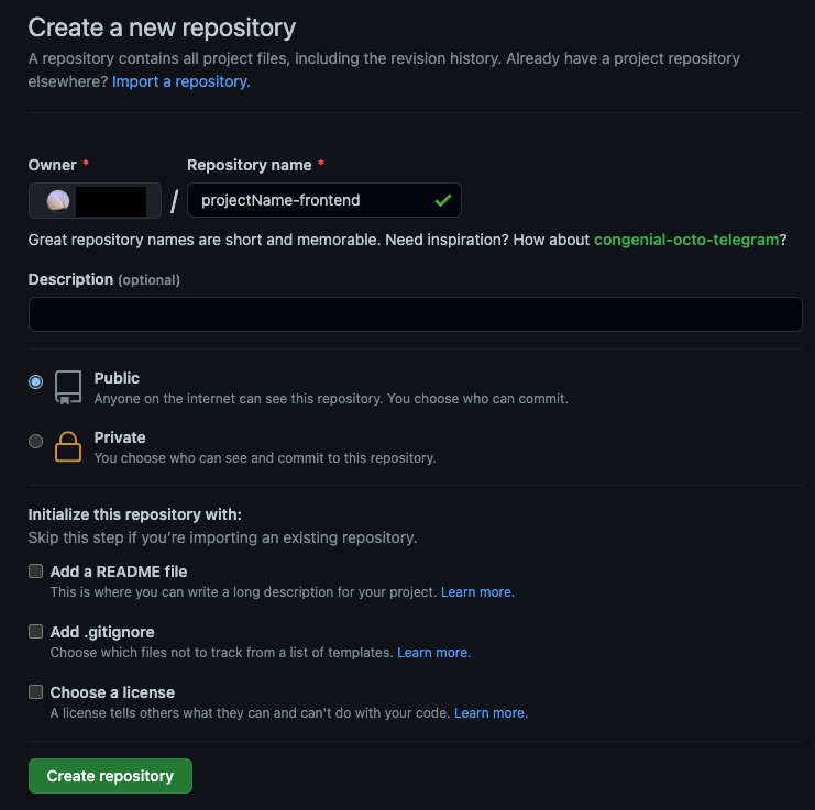 - Frontend와 Backend repository를 따로 만들 예정이다.