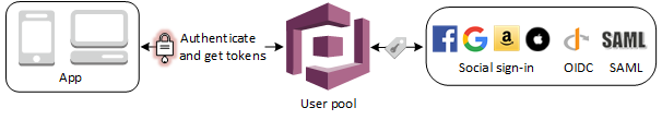 - 앱 사용자는 사용자 풀을 통해 직접 로그인하거나 타사 자격 증명 공급자(IdP)를 통해서 연동 로그인할 수 있다.