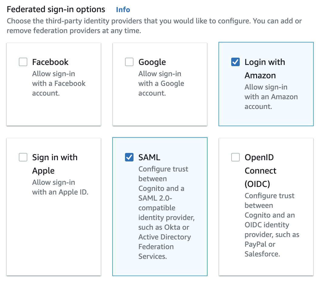 2. 로그인 환경 구성 (Configure sign-in experience)에서 사용자 풀에 사용할 페더레이션 공급자 선택